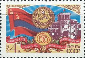 5060. 60 лет Армянской ССР. Герб республики Артикул: 4042 10 руб. в наличии: 1 В корзину Купить в 1 клик Поделиться: