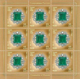 2288. Сокровища России. Алмазный фонд Российской Федерации. Брошь с изумрудом. Лист