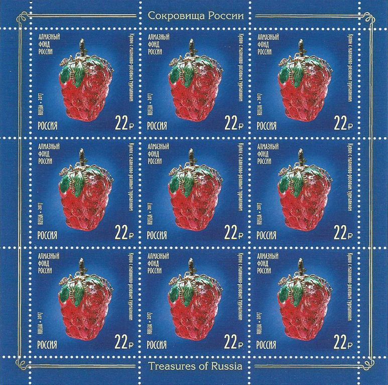 2290. Сокровища России. Алмазный фонд Российской Федерации. Кулон с малиново-розовым турмалином. Лист