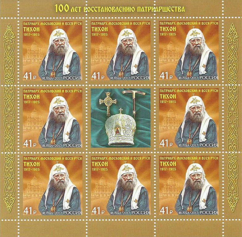 2293. 100 лет восстановлению патриаршества в России. Лист