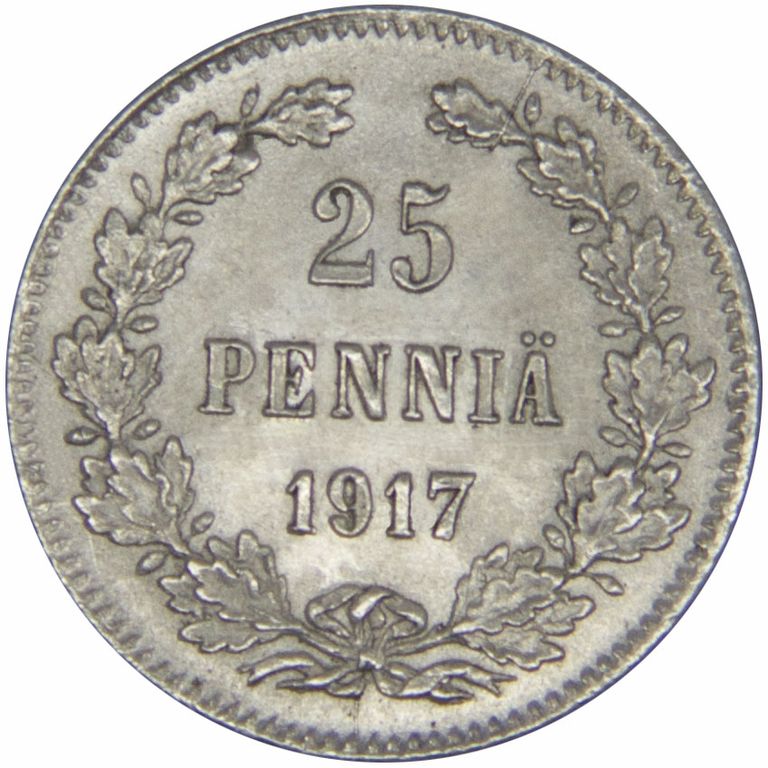 25 пенни, орел без короны. Россия для Финляндии, 1917 год