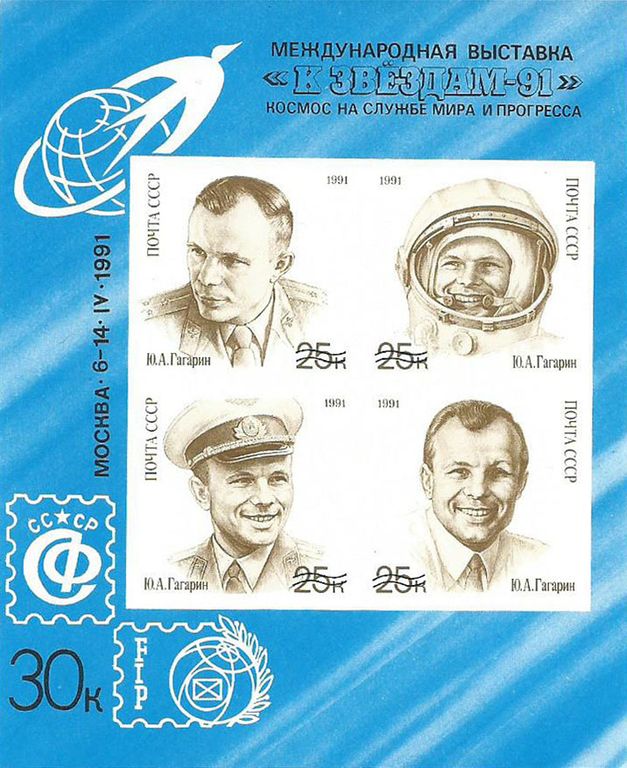 Сувенирный листок "День космонавтики. Международная филвыставка "К звездам-91", 1991 год