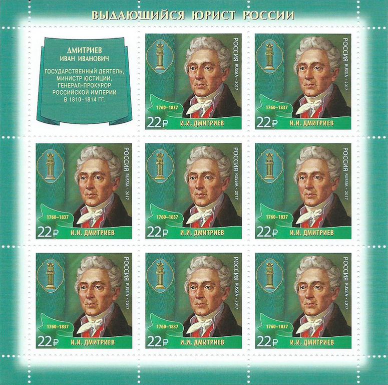 2298. Выдающиеся юристы России. И.И. Дмитриев (1760-1837). Лист