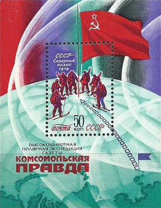 4963. Высокоширотная полярная экспедиция газеты "Комсомольская правда". Почтовый блок