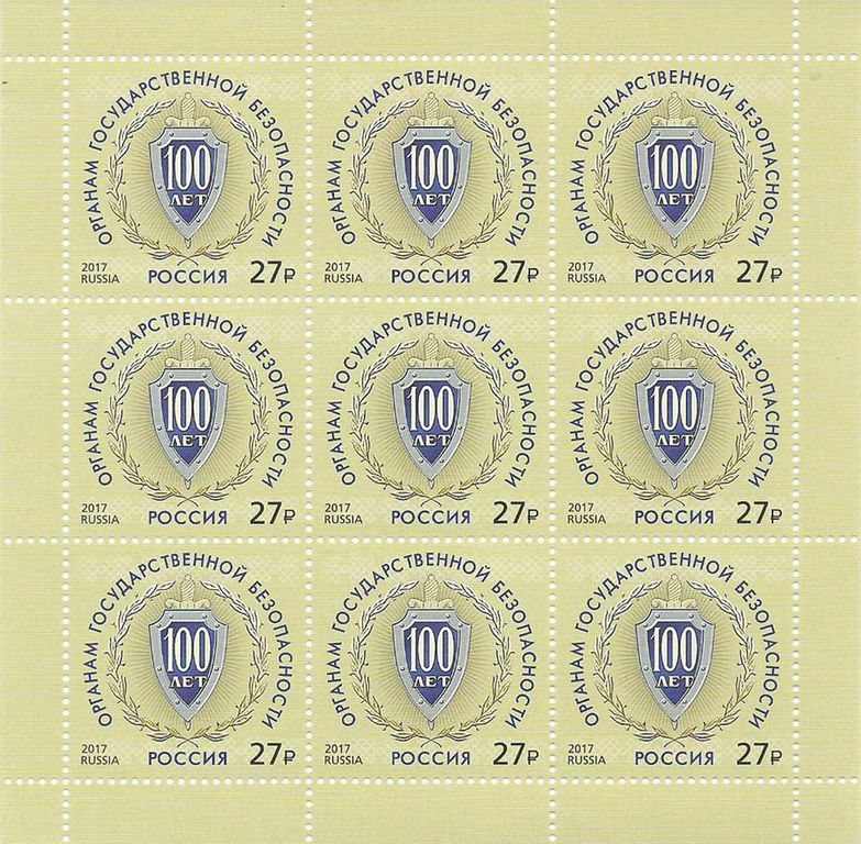 2302. Федеральная служба безопасности. 100 лет органам государственной безопасности. Лист