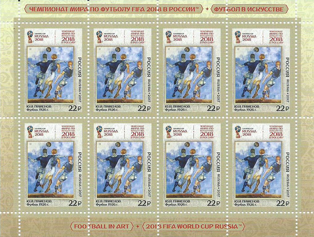 2306. Чемпионат мира по футболу 2018 в России. Футбол в искусстве. Картина "Футбол", 1926 г. Ю.И.Пименов. Лист