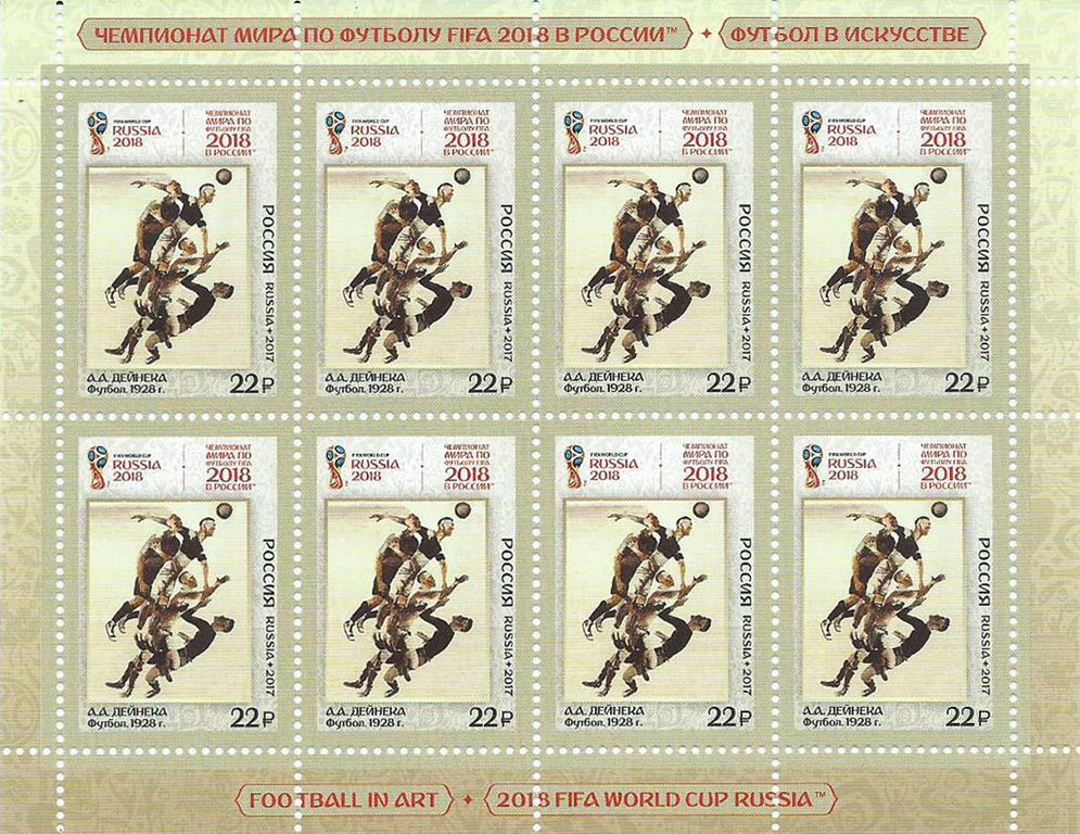 2305. Чемпионат мира по футболу 2018 в России. Футбол в искусстве. Картина "Футбол", 1928 г. А.А.Дейнека. Лист